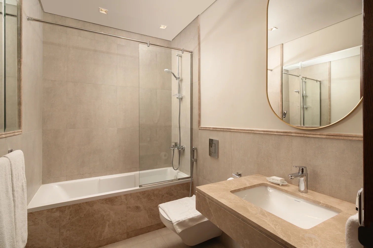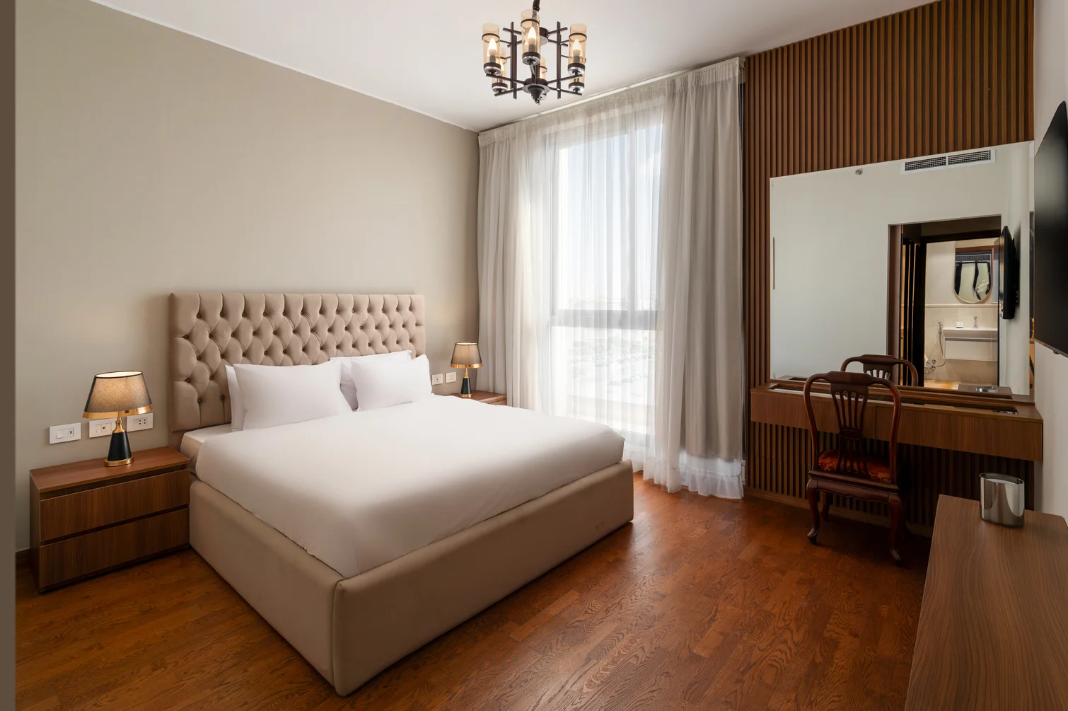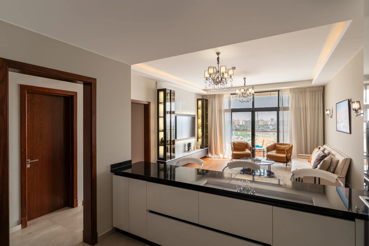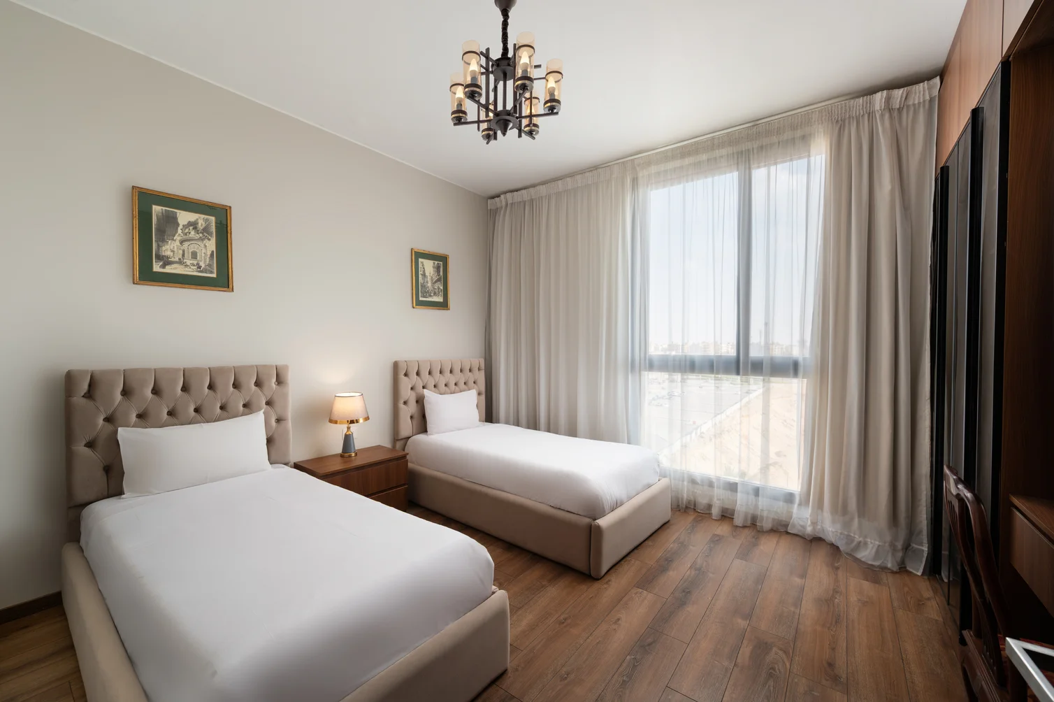 Experience unrivaled luxury at our 2-bedroom apartment in the prestigious High End Towers. Bask in breathtaking city views through floor-to-ceiling windows, enjoy gourmet kitchen amenities, and sink into sumptuous bedding for ultimate comfort. Two private balconies offer additional spaces to unwind and take in the panoramic cityscape. Indulge in top-tier hotel facilities. Your lavish retreat in the heart of the city awaits.